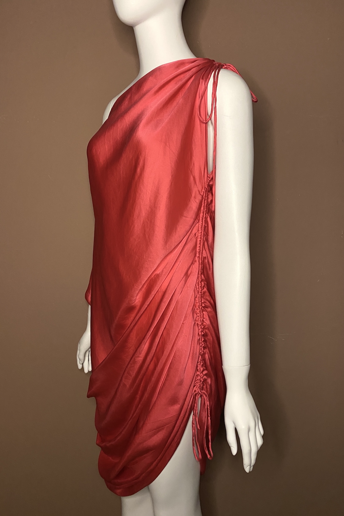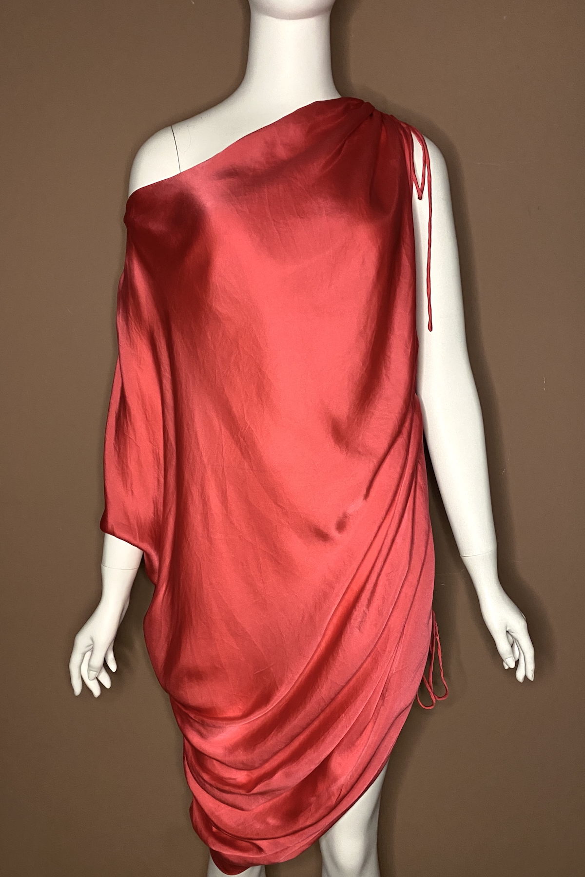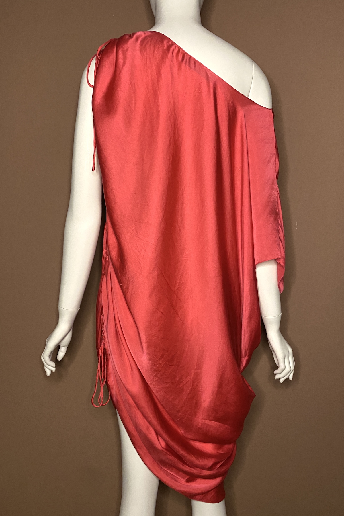 Lanvin by Alber Elbaz Spring 2009 washed silk asymmetric dress with adjustable ruched shoulder and side seam.